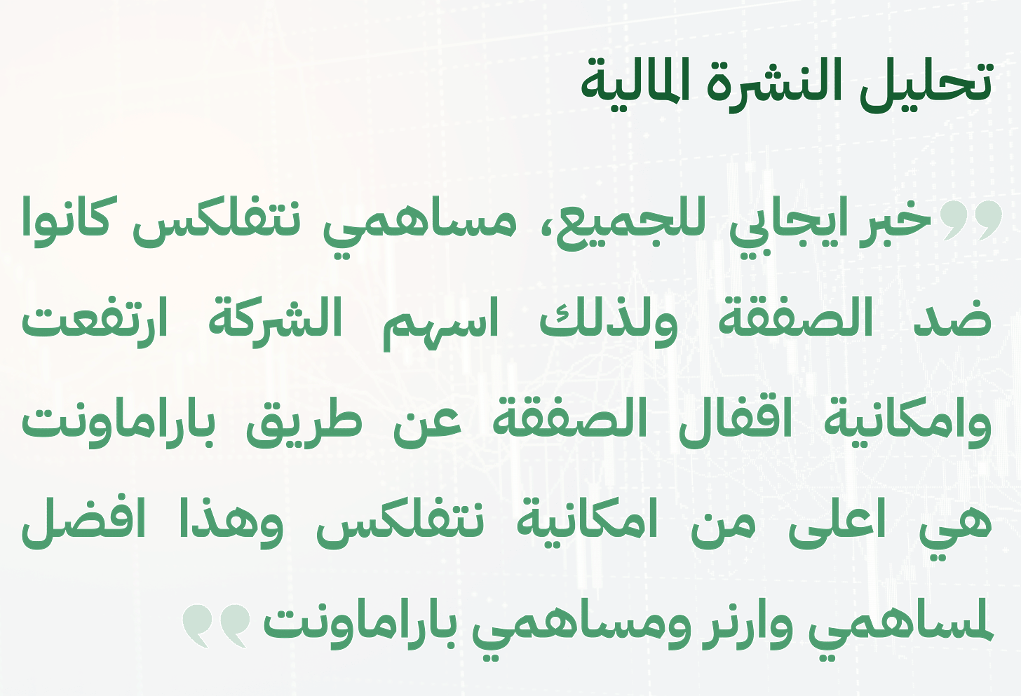 اسهم شركتي نتفلكس وباراماونت سجلوا ارتفاع بعد الاعلان.